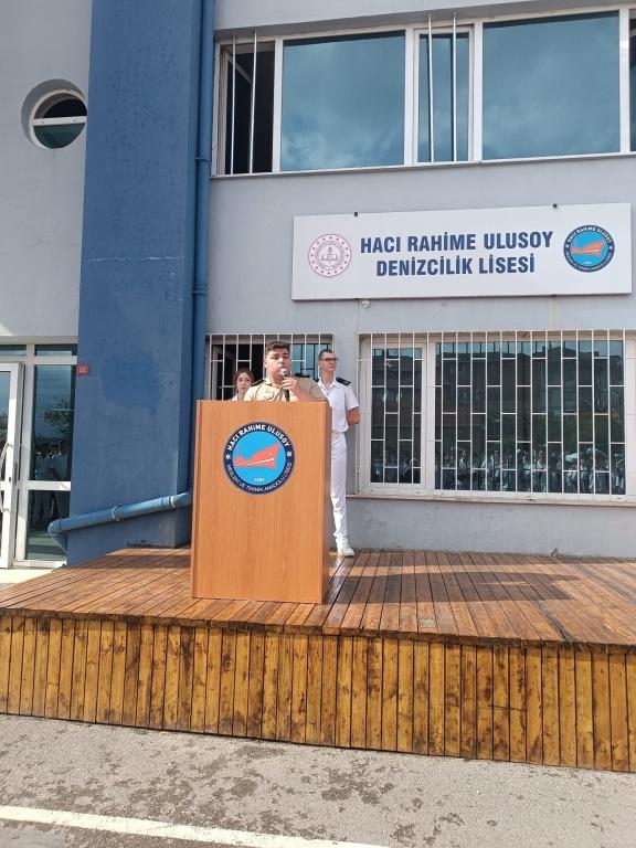 Hacı Rahime Ulusoy Denizcilik Lisesi'nin yeni eğitim-öğretim yılına kapilarını açmanın heyecanını ve gururunu yaşıyoruz. Türkiye"nin denizcilik sektörüne nitelikli ve donanmli bireyler kazandırma hedefiyle çıktiğimız bu yolda, öğrencilerimizi sadece bilgiyle değil, aynı zamanda denizciliğin gerektirdiği disiplin, sorumluluk ve liderlik ruhuyla yetiştirmeyi amaçlıyoruz. Modern laboratuvarlarımız, simülasyon merkezlerimiz ve deneyimli kadromuzla, denizcilik alanında parlak kariyerler inşa etmeleri için en iyi imkanları sunuyoruz. Okul gemimizin demir aldiği, yeni ufuklara yelken açtığı bu özel günde, geleceğin denizcilerini yetiştirecek olmanin heyecanini sizlerle paylaşmaktan mutluluk duyuyoruz. Hepinize başarılı, denizle dolu ve ufuk açicı bir eğitim-öğretim yılı diliyoruz. Saygilarımızla, Hacı Rahime Ulusoy Denizcilik Lisesi Yönetimi